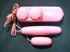 カラーローターにもう一つバイブを付けてあります。コントロールは一つ一つ別にできます。コードは結構自由が利きますのでいろんな所を2点同時責めすることができます。
